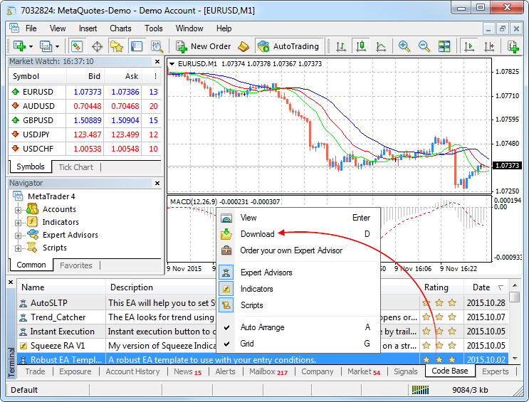 - 修正并加快从代码库下载MQL4程序的速度。直接在平台下载免费的自动交易源代码和指标。