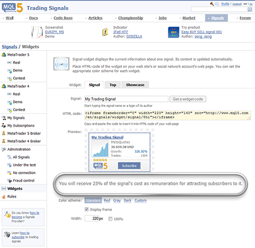Now, it has become much easier to encourage MQL5.community members in advertising your products and signals, as soon as real money is involved. Share your profit with community members who are willing to distribute web links and widgets of your applications and signals and become popular with our affiliate program! We offer more customers for you and more profit for your promoters!